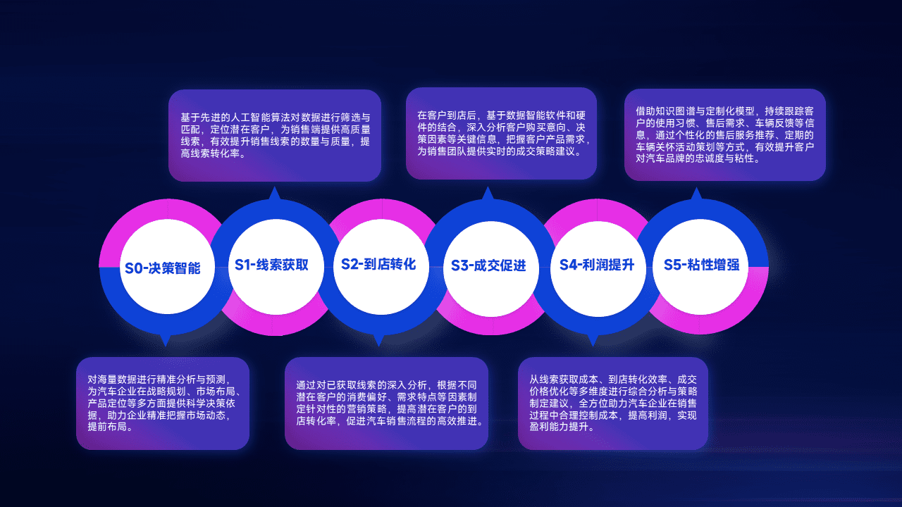 通过拓宽潜在客户来源、、、优化线索分配并提高到店转化率,,,以增强销售效率。。同时,,,,利用线索数据不断优化分析模型,,有效提升转化率,,扩大营销影响力。。。